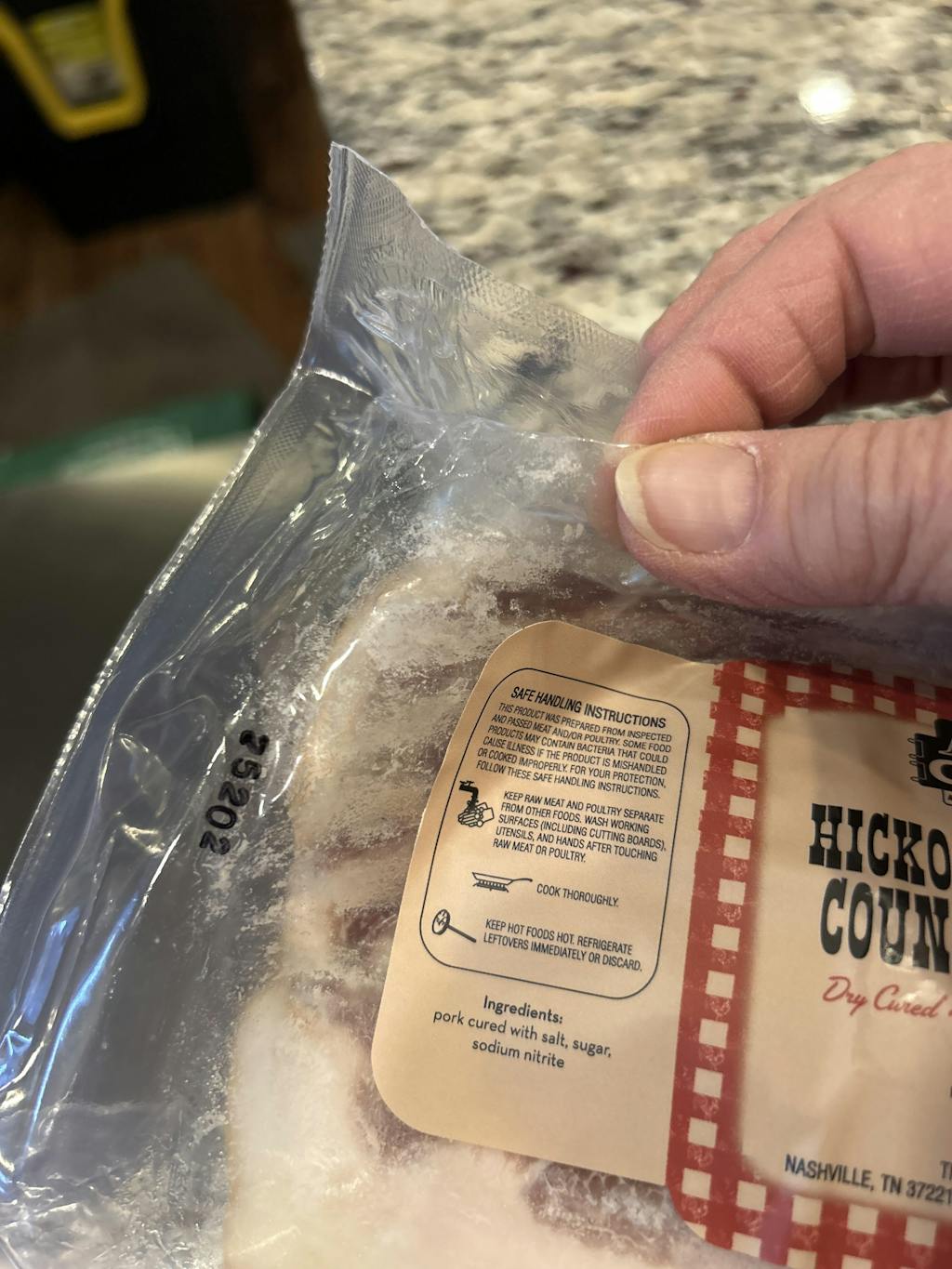 **Applewood Bacon, Maplewood Bacon, Hickory Bacon, Peppered Bacon, Smoked Sausage, and Country Ham are USDA-approved shelf-stable products, good out of refrigeration for up to 7 days. Meat products should be refrigerated or frozen upon arrival. Can be stored in the refrigerator for up to 6 months and 12 months in the freezer.** *Hickory Smoked Bacon is USDA approved out of refrigeration for up to 7 days. We do not pack this item with coolant.*